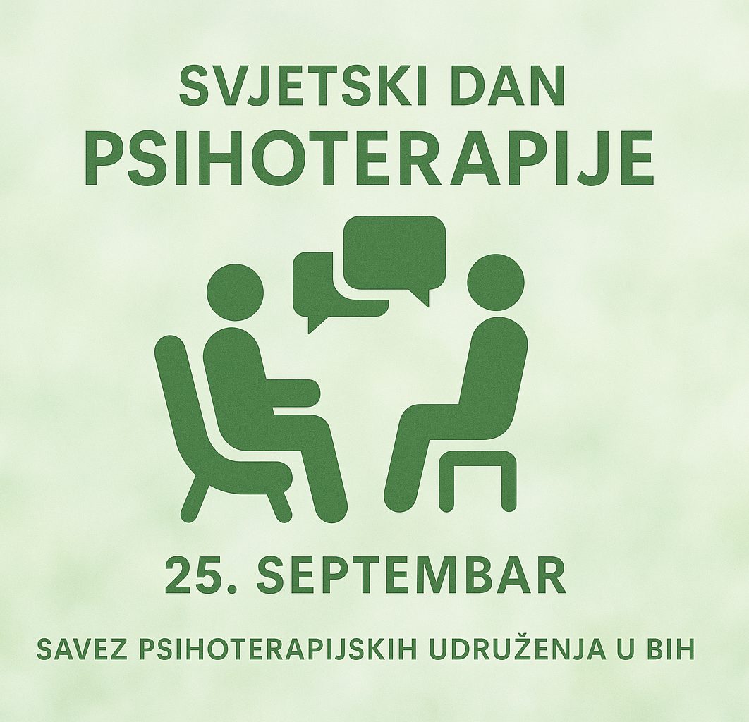 Savez psihoterapijskih udruženja u Bosni i Hercegovini (SPUBIH) obilježava 25. septembar – Svjetski dan psihoterapije, sa ciljem da se podigne svijest o značaju psihoterapije i važnosti brige o mentalnom zdravlju. Psihoterapija je mnogo više od razgovora – to je proces rasta, promjene i ozdravljenja. Uz stručnu podršku, pojedinac dobija priliku da razumije sebe, razvije unutrašnje […]